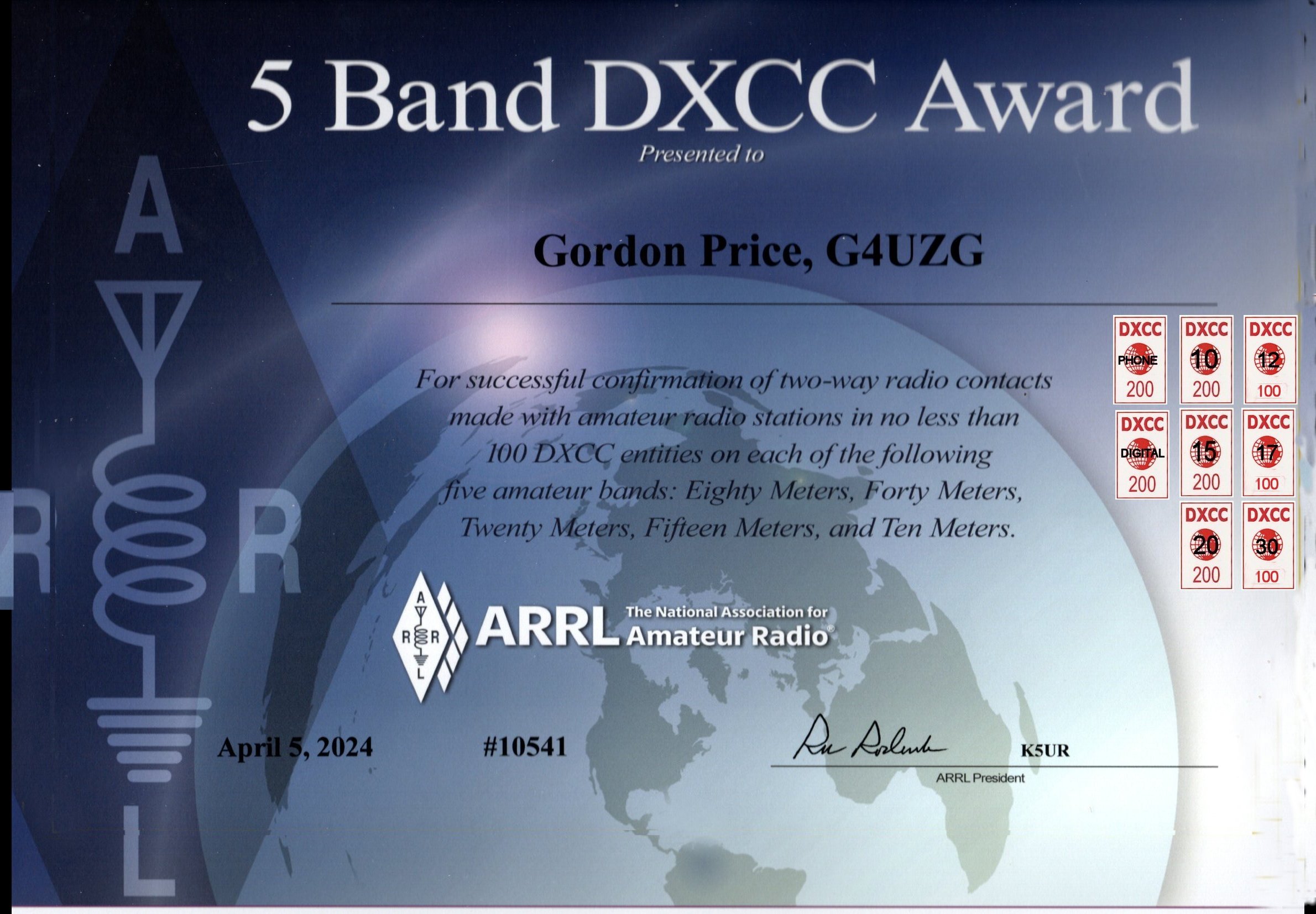 DXCC Bands worked - 10, 12, 15, 17, 20, 30, 40, 80